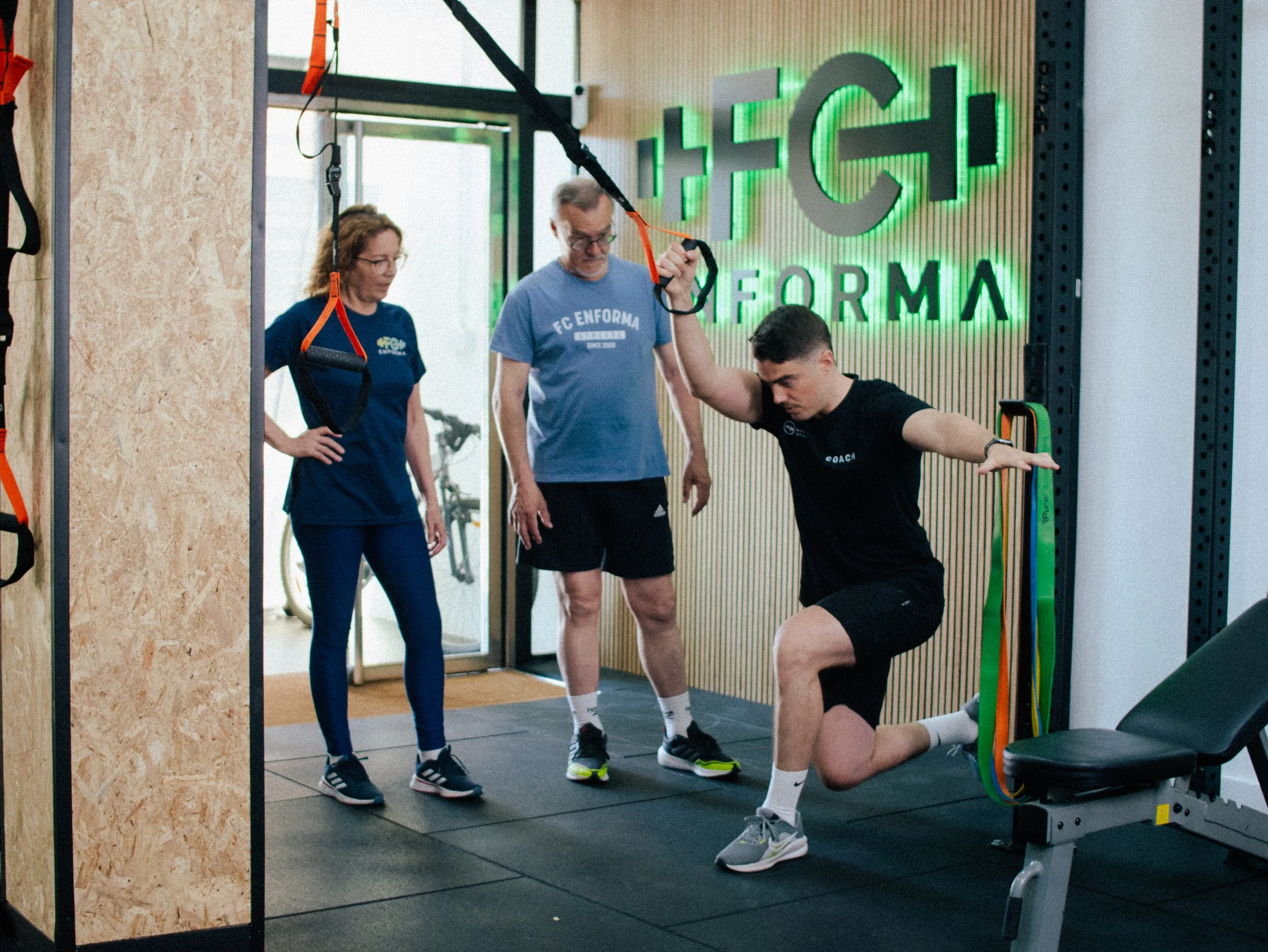 En FC ENFORMA, entrenamos contigo en grupos reducidos o sesiones individuales, adaptados a tus objetivos y necesidades. Disfruta de un entorno profesional y motivador, pensado para ayudarte a alcanzar tus metas de salud y bienestar. Explora nuestras opciones en la sección de servicios.